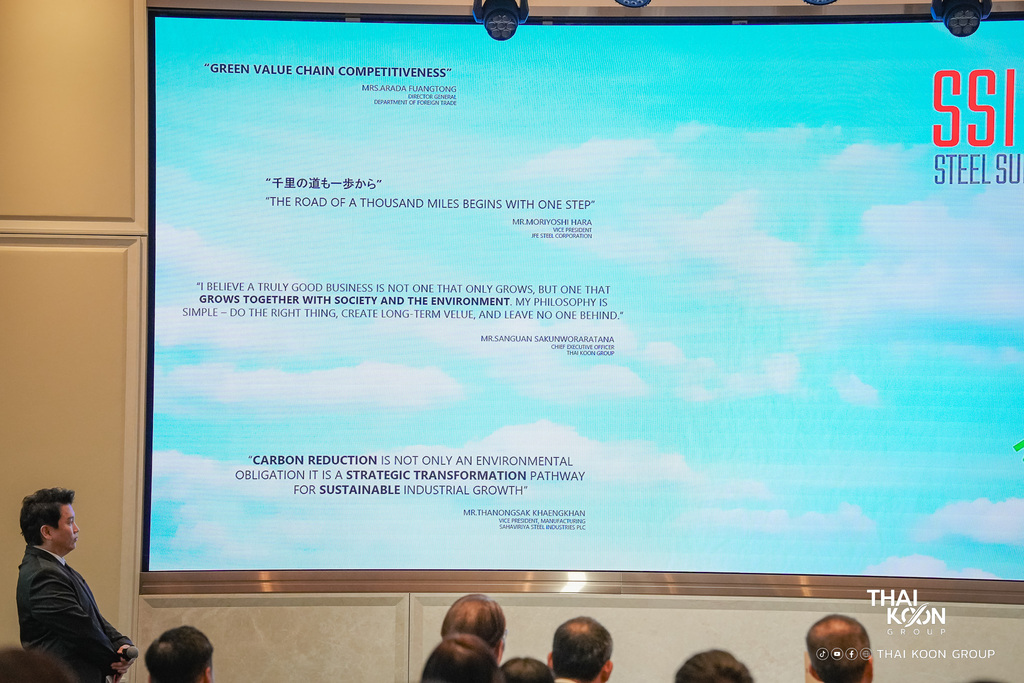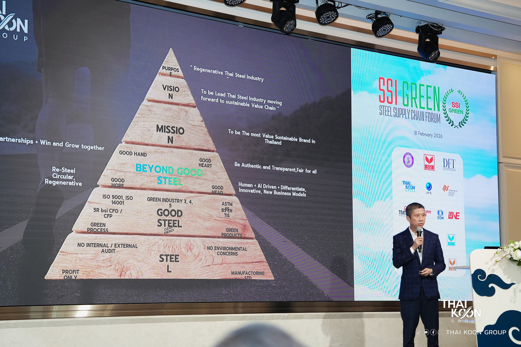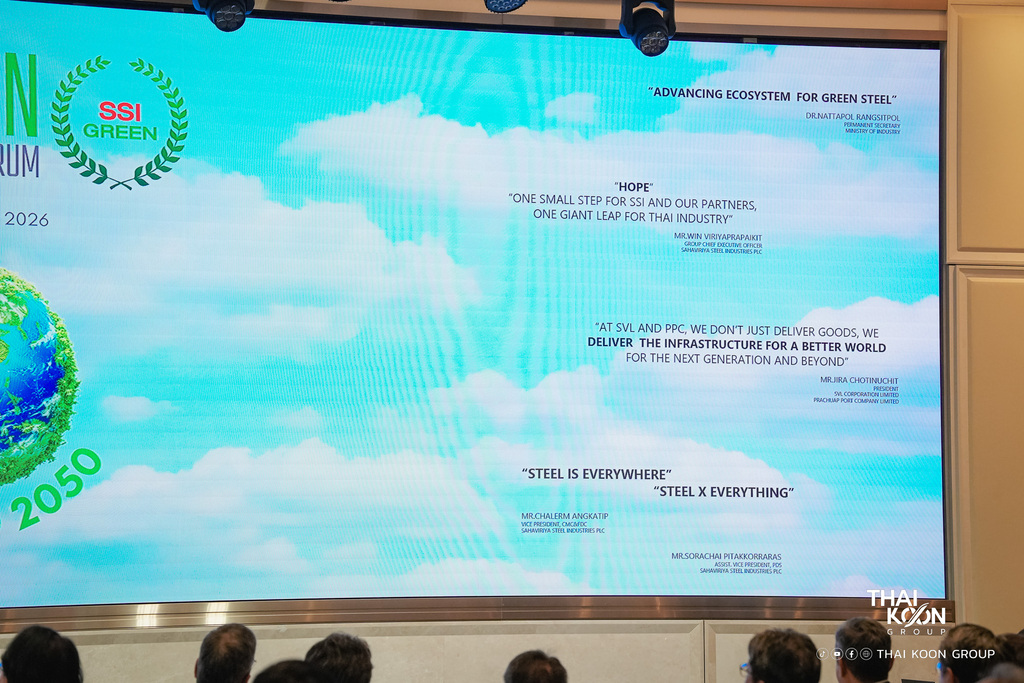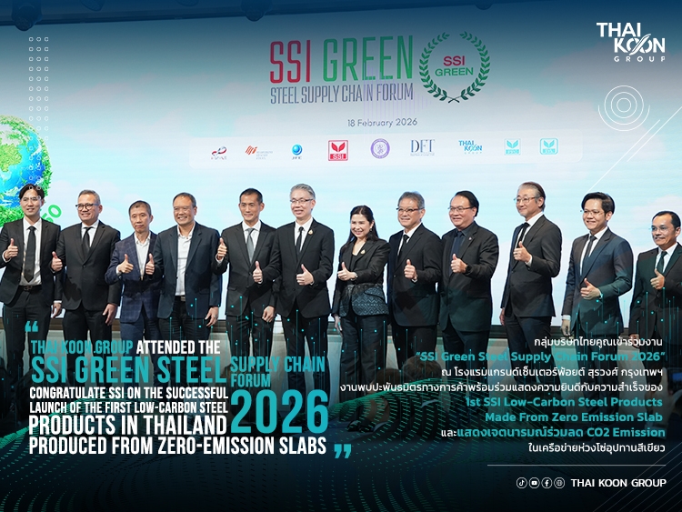 เมื่อวันพุธที่ 18 กุมภาพันธ์ ที่ผ่านมา คุณสงวน สกุลวรรัตน์ ประธานเจ้าหน้าที่บริหาร กลุ่มบริษัทไทยคูณ ได้รับเกียรติให้เข้าร่วมงาน “SSI Green Steel Supply Chain Forum 2026” จาก คุณวิน วิริยประไพกิจ ประธานเจ้าหน้าที่บริหารกลุ่ม บริษัท สหวิริยาสตีลอินดัสตรี จำกัด (มหาชน) (SSI) จัดงานที่ ณ โรงแรมแกรนด์เซ็นเตอร์พ้อยต์ สุรวงศ์ กรุงเทพฯ งานดังกล่าวเป็นการประกาศความสำเร็จในการผลิตและส่งมอบผลิตภัณฑ์เหล็กแผ่นรีดร้อนชนิดม้วนคาร์บอนต่ำเป็นครั้งแรกในประเทศไทย นอกจากนี้ยังเป็นการเปิดตัว “SSI GREEN” กลุ่มผลิตภัณฑ์เหล็กที่เป็นมิตรต่อสิ่งแวดล้อม ซึ่งมีเป้าหมายเพื่อพัฒนาห่วงโซ่อุปทานเหล็กสีเขียวและสนับสนุนเป้าหมายการปล่อยก๊าซเรือนกระจกสุทธิเป็นศูนย์ของประเทศ โดยมีผู้แทนพันธมิตรอุตสาหกรรมเหล็กตลอดห่วงโซ่อุปทาน 19 องค์กร ร่วมงานและแสดงเจตนารมณ์ร่วมกันแสดงความมุ่งมั่นที่จะผลักดันอุตสาหกรรมเหล็กของประเทศไทยไปสู่เศรษฐกิจคาร์บอนต่ำ
