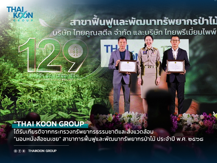 THAI KOON GROUP ได้รับเกียรติจากกระทรวงทรัพยากรธรรมชาติและสิ่งแวดล้อม “มอบหนังสือชมเชย” สาขาการฟื้นฟูและพัฒนาทรัพยากรป่าไม้ ประจำปี พ.ศ. ๒๕๖๘